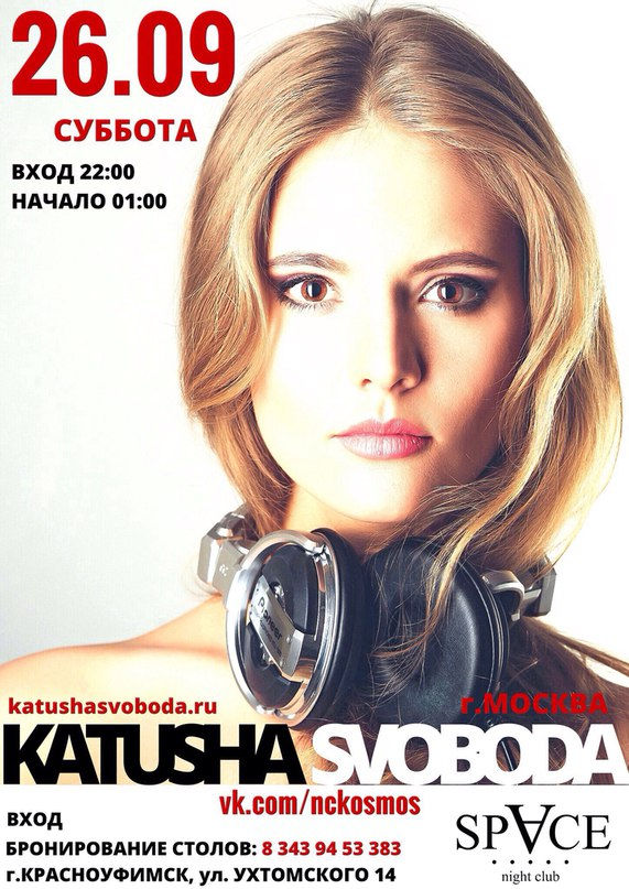 26/September - Katusha Svoboda @ Space Night Club, Russiakatushasvoboda26 сент. 2015 г.1 мин. чтения09/October - Katusha Svoboda @ BOX Vienna, Austria
